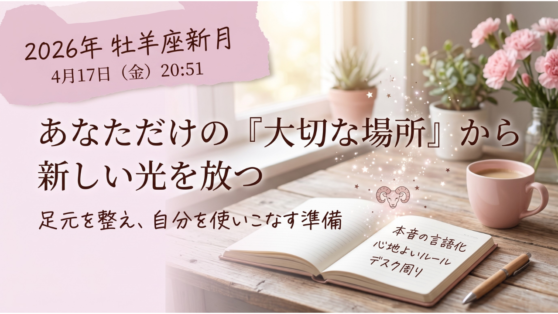 2026年4月17日、20時51分。牡羊座で新月を迎えます。春の始まりを告げる牡羊座のエネルギーが、もっとも成熟した状態で放たれる今回の新月。今回のテーマを一言でいうなら、「自分という個性を100%使いこなすために、まずは一番身近な『拠点』...